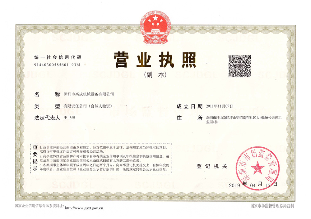 歡迎訪問深圳市高成機械設備有限公司官方網站!